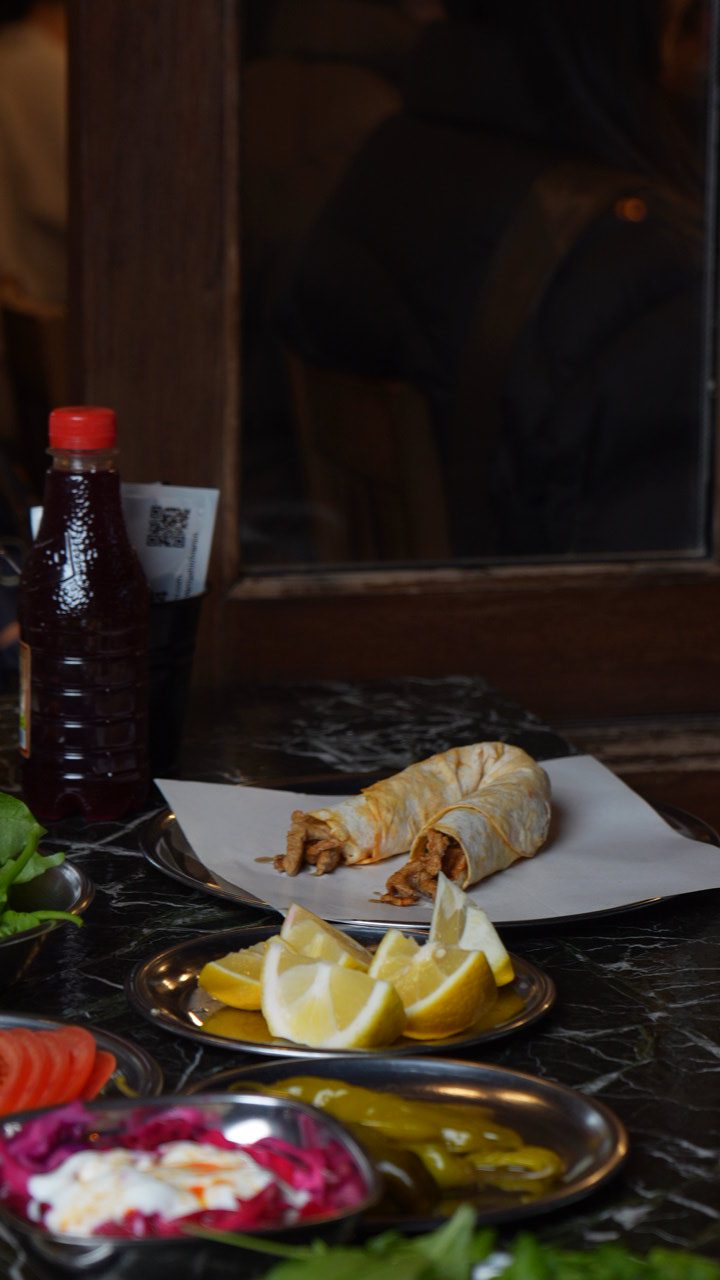 Tantuni meat with a Turkish kebab
